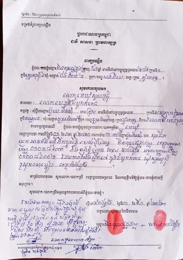 ក្រោយពេលដាក់ពាក្យបណ្តឹង លោកមេឃុំក៏បានកោះហៅឈ្មោះ បួយ មិនតាំ ជនជាតិវៀតណាម ប្រើឈ្មោះខ្មែររូបនេះ ទៅដោះស្រាយចំនួន៣លើកនៅសាលាឃុំ ប៉ុន្តែឈ្មោះ បួយ មិនតាំ នេះមិនព្រមចូលខ្លួនដោះស្រាយឡើយ ដោយហេតុនេះហើយ ទើបរូបលោក ដាក់ពាក្យប្ដឹងចូលទៅតុលាការ ដើម្បីចាត់ការតាមផ្លូវច្បាប់ ដោយទាមទារសំណងការខូចខាតចំនួន២រយលានរៀល និង ទាមទារចាក់ដីលុបរណ្ដៅឲ្យដូចដើម ព្រមទាំងសុំឲ្យតុលាការអនុវត្តទៅតាមផ្លូវច្បាប់។