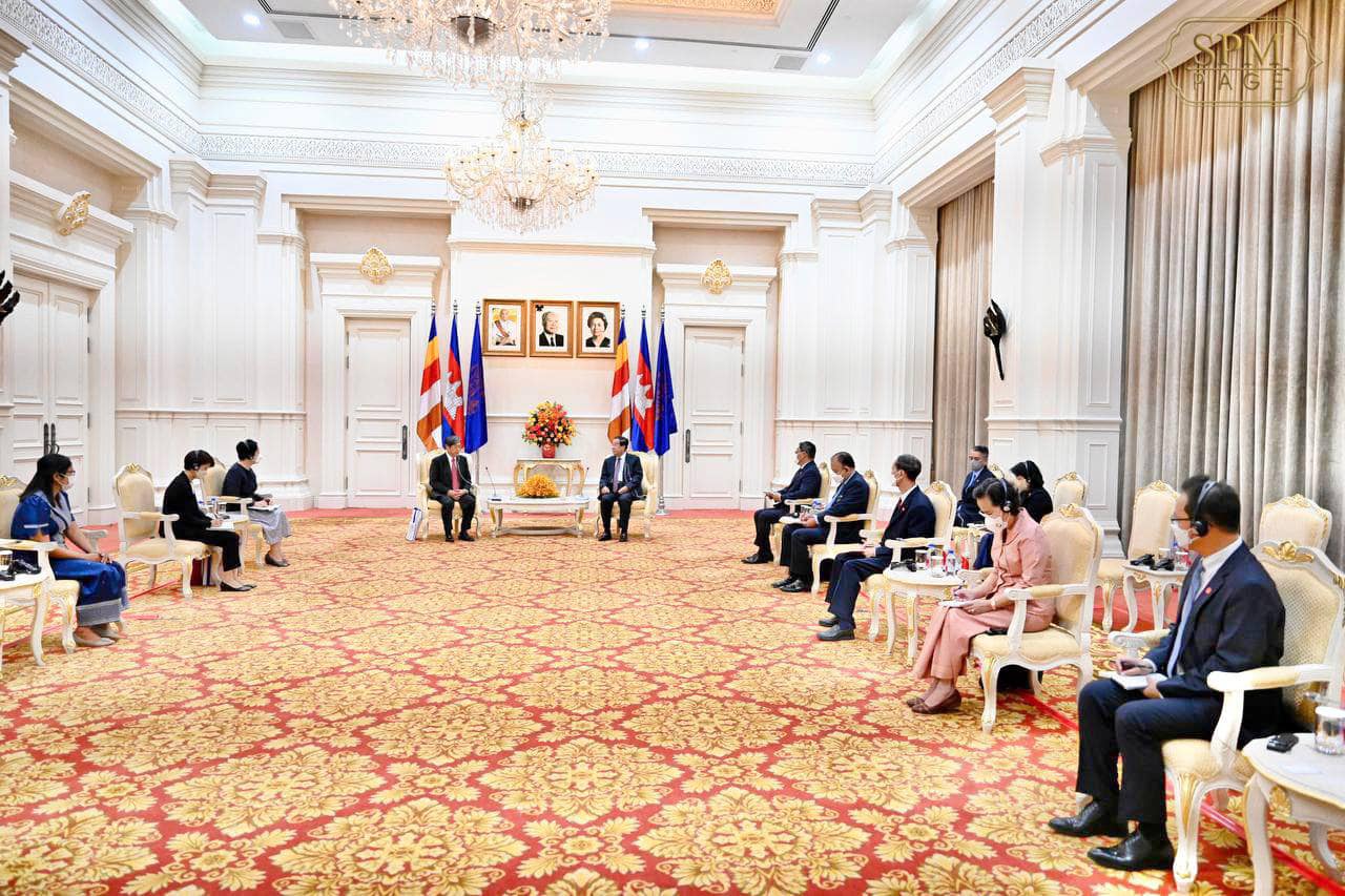 ភ្នំពេញ៖ សម្ដេចអគ្គមហាសេនាបតីតេជោ ហ៊ុន សែន នាយករដ្ឋមន្ត្រី នៃព្រះរាជាណាចក្រកម្ពុជា បានអនុញ្ញាតឱ្យ ឯកឧត្តម KITAOKA Shinichi អតីតប្រធានទីភ្នាក់ងារសហប្រតិបត្តិការអន្តរជាតិជប៉ុន (JICA) ចូលជួបសម្ដែងការគួរសម និងពិភាក្សាការងារ នៅវិមានសន្តិភាព រាជធានីភ្នំពេញ នាព្រឹកថ្ងៃទី១៦ ខែកញ្ញា ឆ្នាំ២០២២។