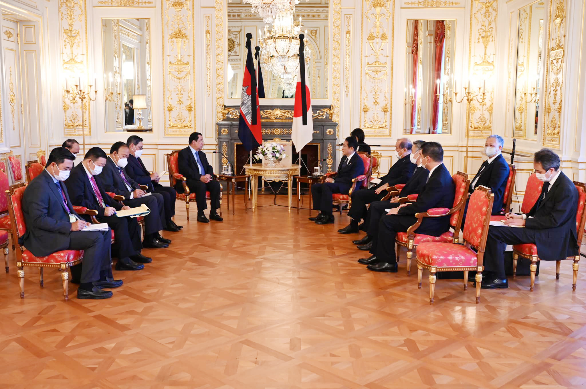 ភ្នំពេញ៖ នៅព្រឹកថ្ងៃទី២៨ ខែកញ្ញា ឆ្នាំ២០២២ សម្ដេចអគ្គមហាសេនាបតីតេជោ ហ៊ុន សែននាយករដ្ឋមន្ត្រី នៃព្រះរាជាណាចក្រកម្ពុជា បានអញ្ជើញជួបពិភាក្សាការងារជាមួយ ឯកឧត្តម គីស៊ីដា ហ្វូមីអូ នាយករដ្ឋមន្ត្រីនៃប្រទេសជប៉ុន នៅទីក្រុងតូក្យូ ប្រទេសជប៉ុន។