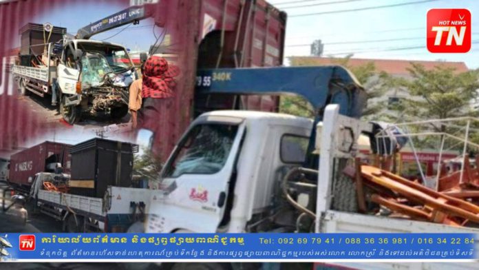 ភ្នំពេញ៖ រថយន្តស្ទូចម៉ាក ហ៊ីយ៉ាន់ដាយ១គ្រឿង ខណៈពេលកំពុងបើកបរក្នុងលឿនមធ្យម ពេលទៅ ដល់ចំណុចភ្លើងស្តុប ជាន់ហ្វ្រាំងមិនស៊ី ក៏បានជ្រុលទៅបុក រថយន្ត កុងតឺន័រ១គ្រឿងពីក្រោយ ដែល កំពុងឈប់ភ្លើងសញ្ញាពណ៍ក្រហមពេញទំហឹង។