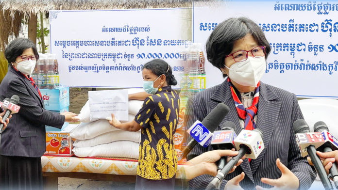 កណ្តាល៖ លោកជំទាវ ឱ វណ្ណឌីន រដ្ឋលេខាធិការ និងជាអ្នកនាំពាក្យក្រសួងសុខាភិបាល នៅរសៀលថ្ងៃទី១៥ ខែមិថុនា ឆ្នាំ២០២១នេះ បាននាំយកថវិកាលើកទឹកចិត្ត របស់សម្តេចអគ្គមហាសេនាបតីតេជោ ហ៊ុន សែន នាយករដ្ឋមន្ត្រី យកទៅប្រគល់ជូនដល់ដៃ អ្នកស្រី ស៊ុ សំអឿន មនុស្សទី៣លាន ដែលបានចាក់វ៉ាក់សាំង។