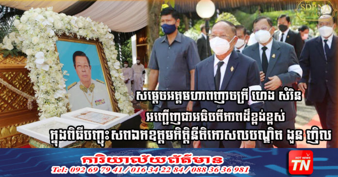 សម្តេចអគ្គមហាពញាចក្រី ហេង សំរិន អញ្ជើញជាអធិបតីភាពដ៏ខ្ពង់ខ្ពស់ ក្នុងពិធីបញ្ចុះសពឯកឧត្តមកិត្តិនីតិកោសលបណ្ឌិត ងួន ញ៉ិល