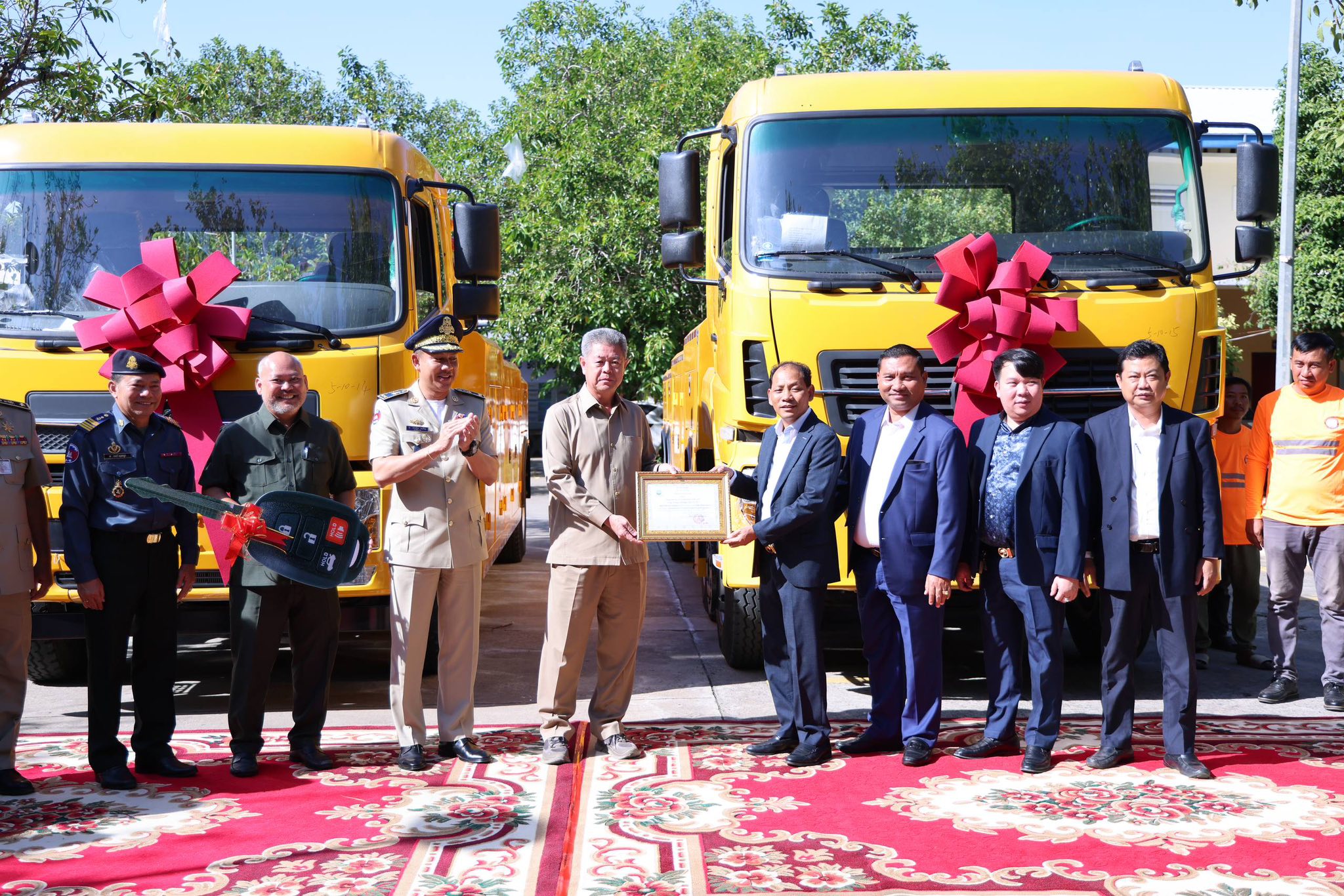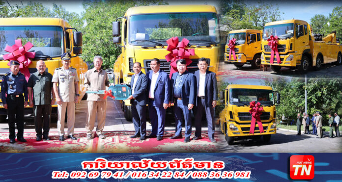 ឯកឧត្តម ភឺន ផល្លា និងលោកជំទាវឧកញ៉ា សាយ សោភា ផ្ដល់រថយន្ត ស្ទូច សណ្ដោង ធុនធ្ងន់ ចំនួន ២ គ្រឿង ដល់រដ្ឋបាលខេត្តកណ្ដាល